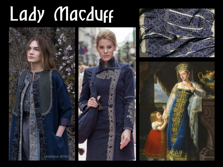 Setting Shakespeare's Macbeth in a northern Russian tundra, I wanted to examine how an icy and harsh environment would push the characters to make desperate choices to maintain power and status. Drawing parallels to the Russia in the late 1600's and the tumultuous Russia of today, I explored how higher status characters had more historical silhouettes and textures while still maintaining an appeal to modern audiences.