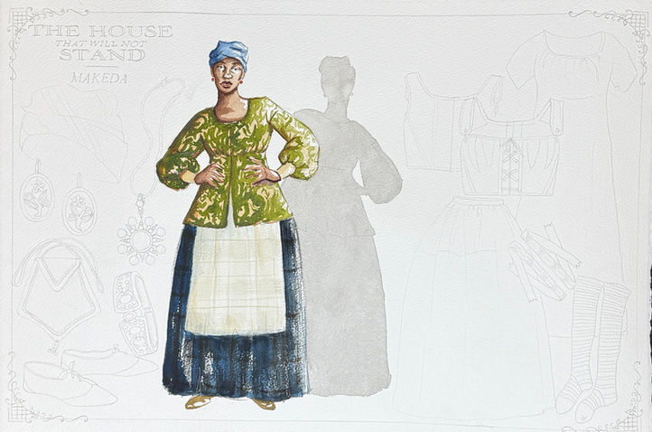 In collaboration with director Nicole Watson, this theoretical project examines The House That Will Not Stand by Marcus Gardley. As we developed our ideas for the show we wanted to focus on the universal desire for freedom. Fabric tells the story of this family and their surroundings, contrasting between binding them and setting them free. Using light, color, pattern and transparency to explore the fall of the family, we hope to showcase how fighting for survival in the face of a racist and misogynistic power structure takes its toll on women of color both in 1836 and today.